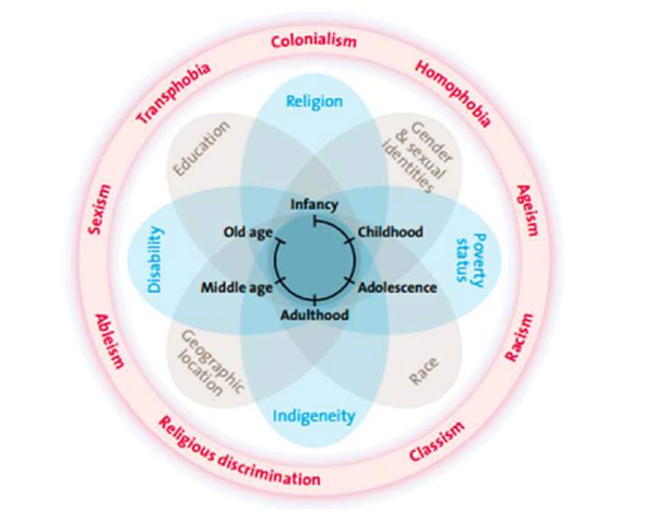 “The concept of intersectionality describes how systems of inequality based on gender, race, ethnicity, sexual orientation, gender identity, disability, class and other forms of discrimination “intersect” to create unique dynamics and effects.”(Centre for Intersectional Justice).